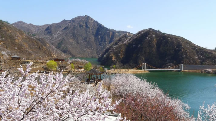 黄花城水长城 黄花城水长城位于九渡河镇境内,距北京市区65公里,是以奇而著称,融山川、碧水、古长城为一体的旅游休闲胜地。而这里的“ 三绝景 ”更是引人入胜,叹为观止。 “一绝”建于明永乐年间的长城盘旋于山脊之上,环绕在灏明湖畔,景色秀美壮观。 “二绝”湖水将长城自然断开,形成长城戏水、水没长城的奇特景观。 “三绝”明代板栗园,古树盘根错节,形态各异。那巨龙戏珠之躯和撑掩苍天之冠,令人赞不绝口。 沿古道、过木桥、涉小溪、跨怪石,上行可达黑龙潭。景区还有龙尾洞、紫翠峰、醉女山、石浪谷、情人峰、三珠连潭等自然景观。 地名由来 因镇域中部最大村名九渡河而得名。 地方特产 九渡河镇为怀柔区板栗、核桃生产基地之一,另有梨、苹果、柿子、红果等。 |