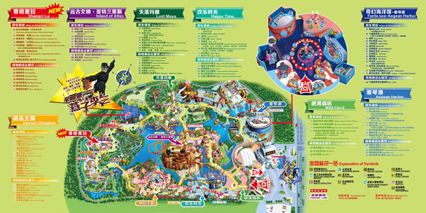 欢乐世界主题漂流:可以在15分钟环球漂流中,欣赏到两岸及半空37个各大洲最有代表性的场景,近400个身着各地民族服饰的人形木偶。