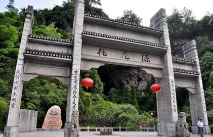 酉阳桃花源景区位于重庆市酉阳土家族苗族自治县境内桃花源路232号,东邻湖南省龙山县,南与秀山县及贵州省松桃、印江县接壤,西与贵州省沿河县隔江(乌江)相望,西北与彭水县,正北与黔江区及湖北省咸丰、来凤县相连。