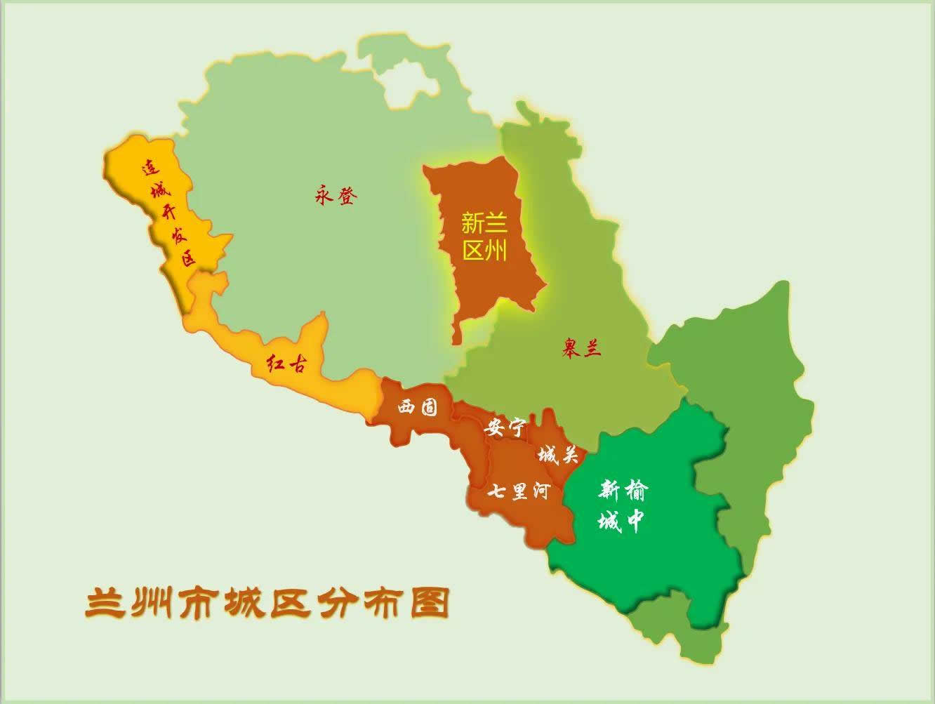 兰州市辖5个区、3个县: