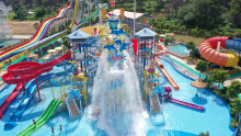 水城的游泳区由儿童池,标准池和深水池组成。儿童池的水深50cm;标准池深为1.5米;阶梯式的深水池分层为深度1.5米和2.5米-3米。更有长达1000多米,高度落差达到28米的“九寨水城空中滑道”。