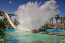 急流泛舟:急流泛舟是模拟美国科罗拉多大峡谷宏伟壮丽的造型修建而成,当您乘坐皮筏船深入科罗拉多河谷挑战急流,穿过瀑布,沉醉于大峡谷壮丽的景色时,印第安人突然来袭,紧接着是一个您绝对逃不过的陷阱,三个大酒桶从山顶上倒下几百加仑的大水,越过大桥后是连番重炮攻击,炮声四起,水花四溅,这时让您只想赶快逃离,不过西部的勇士总是还会再来挑战。泛舟全长约400米,运用高科技设备控制水流流速,制造急流旋涡。船速达3-4米/秒,这一惊险的历程只要3分钟,每艘船可乘坐8名勇士。