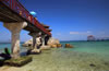 情人桥,是贺岁片《私人订制》重要拍摄地,原是座铁索桥,是当年守岛部队的海上瞭望点。走在摇摇晃晃的铁索桥上,需要几分胆量和机灵。有些小姐既想过桥到瞭望点里体会一下,又怕掉进海水里,过桥时紧紧抓住朋友的手不放,因此这桥又被戏称为“情人桥”。后来该岛为客人安全着想,故将原来的铁索桥改造成如今的木板桥,依旧是情侣们最向往的地方。