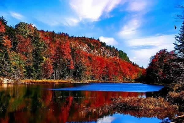 枫林湾:这是一片参天蔽日的枫树林,春绿秋红,给人宁静温馨而又博大壮观的感受。