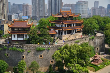 天心阁原名“天星阁”,其名源于明代盛传的“星野”之说,按星宿分野,“天星阁”正对应天上“长沙星”而得名,因此这里曾是古人观测星象、祭祀天神之所,加之古阁位于古城长沙地势最高的龙伏山颠,被古人视为呈吉祥之兆的风水宝地,人们多愿在此祈福消灾、强世兴家。清乾隆年间,随着城南书院迁址天心阁城墙下,天心古阁曾作为与城南书院相对应的文化祭祀场所,阁中供奉有文昌帝君和奎星两尊神像,以保长沙文运昌盛,旧时前来拜祭的人络绎不绝,文人墨客也常登阁远眺、吟诗作赋。清代大学者黄兆梅一首“四面云山皆入眼,万家烟火总关心”已成为千古绝唱,而明代李东阳的“水陆洲洲系舟,舟动洲不动;天心阁阁栖鸽,鸽飞阁不飞”绝妙佳联仍被广为传颂。天心阁下的古城墙始建于西汉高祖五年(公元前202年),为长沙王吴芮所筑,距今有2200多年的历史。明洪武五年(公元1372年)长沙守御指挥使邱广修复加固,其长为8.5公里,呈南北长、东西窄条状,共设九座城门,大大增强了长沙城池的防御能力。后至民国十三年(1924年)原国民政府修筑环城马路,仅保留天心阁这段古城墙,其长251米,高13.4米,存南、北两月城,是中国古代城防工事现存实例中极为罕见的,对研究古代军事城市防御具有极其重要的价值,是古城长沙为数不多的文化载体和历史遗址。 |