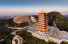 佛顶塔是佛顶圣境的标志性建筑之一,建筑高度约88米,建筑面积5065平方米,九级四面,与明代弘觉寺塔相为呼应,重现历史上牛首山“双塔”的恢弘格局。塔内供奉一尊毗卢遮那佛坐像,置有一口仿唐式全铜铸金刚钟,还有各种经藏展示。整个佛顶塔造型宏伟,尽显唐风古韵,登塔望远,可尽收牛首山四季美景。
