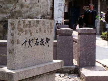 石板街,南北贯穿古镇,并连接各支路,呈蜈蚣形。全长1.5公里,主干街道长800米,由2072块长条形花岗岩铺设而成。石板下面设有既宽又深的下水道,与古镇各处的河埠、河滩相连通。因此,即使下滂沱大雨,石板街上从不积水,转晴即干。