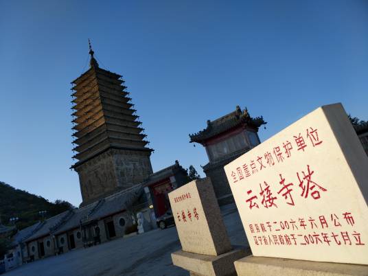 云接寺塔,早年称摩云塔,中寺塔,位于辽宁省朝阳市双塔区凤凰山云接寺内,始建于辽代,清雍正十三年(1735年)僧人海沧、海明募建华云寺守塔,后因塔寺上空岚气蒸腾,常有云雾缭绕,遂改名云接寺,塔也随之改为云接寺塔。