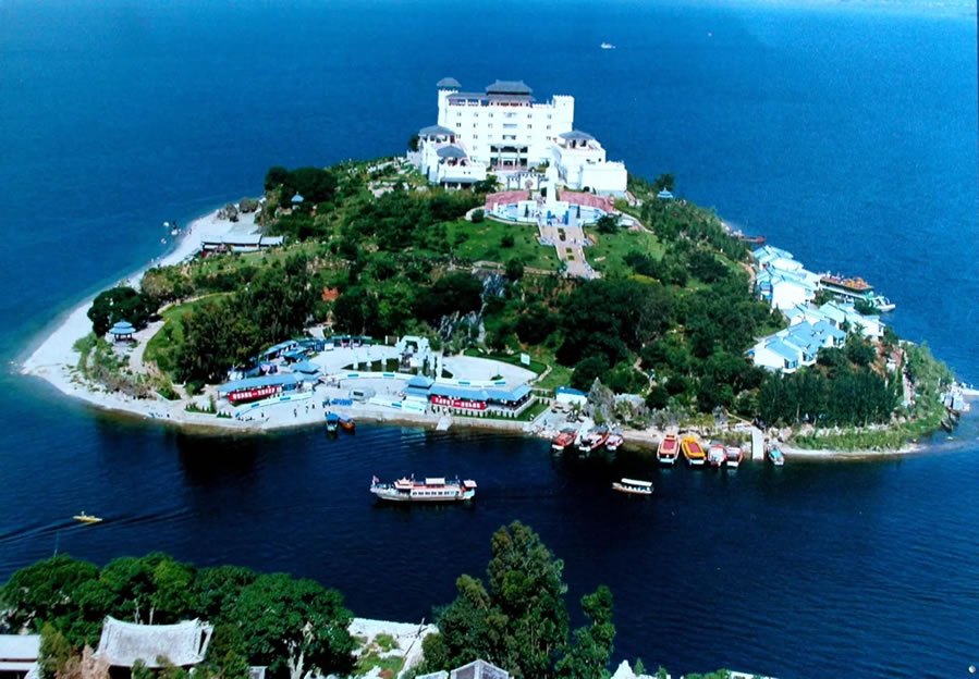 乘船登岛→汉白玉观音像→南诏行宫→本主广场→太湖石群落→月亮宫→返程。