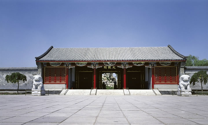 北京大观园,位于北京市西城区南菜园街12号,为一个再现中国古典文学名著《红楼梦》中“大观园”景观的仿古园林,是以影视拍摄服务为主,兼具观光旅游、文化娱乐、休闲度假等功能的综合性旅游区。其占地面积11.06万平方米,建筑面积2.54万平方米,水域面积1.6万平方米。1983年,因中央电视台筹备拍摄电视连续剧《红楼梦》,开始筹备建造大观园。1984年,北京大观园开始建造,分为三期工程,1985年7月完成一期工程,而后又于1986年、1988年相继完成二期、三期工程。期间,1986年10月,北京大观园在完成二期工程后正式对外开放。1996年,北京大观园被北京市文物局批准为“北京红楼文化艺术博物馆”。北京大观园由5处庭院景区、3处自然景区、1处佛寺景区、1处殿宇景区以及40多个景点组成,其主要有怡红院、曲径通幽处、省亲石牌坊、顾恩思义殿等景点。北京大观园的修建实现了《红楼梦》的梦外梦,为研究和弘扬红学提供实体,还为继承和发扬中国传统的园林艺术创造新的经验。作为集古典园林外观、红楼文化内涵、博物馆功能于一体的旅游场所,另外,大观园还成为《还珠格格》《甄嬛传》《上错花轿嫁对郎》等热门电视剧的取景地。