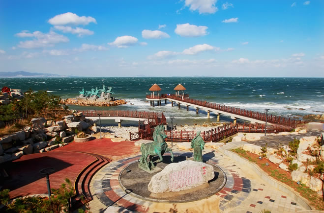 天马广场→海水浴场→獐岛→御笔苑→秦风崖→海岛来信→海岛日记→莲花夕照(含日落)