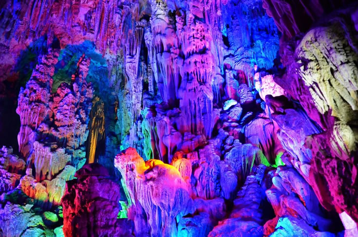 - 天洞:宏大绮丽,以“东海龙宫”“通明宫”为代表,钟乳石形态各异,灯光映衬下如梦如幻。