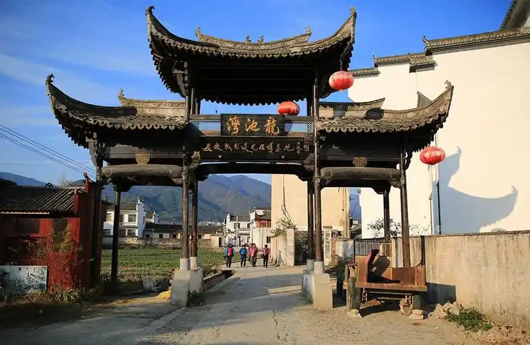 龙池湾景区位于安徽省黄山市黟县宏村镇,毗邻世界文化遗产宏村,距黄山风景区25公里、西递20公里。景区以羊栈河为主线,唐代古驿道穿行其间。农耕文化园占地260余亩,集中展示水力潦车、木榨油坊等传统农具,游客可体验采茶、垂钓、徽州婚俗等活动,保留碓米、制茶等原生态农耕场景。旅游设施包含可容纳300人的餐厅、徽派休闲屋及沿河别墅,配套跑马场等休闲项目。景区通过农事体验活动构建差异化旅游模式,与宏村文化观光形成互补。