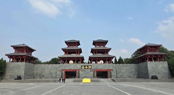 函谷关历史文化旅游区位于河南省灵宝市,由灵宝市委、市政府投资5.89亿元打造,距灵宝市区13公里,连霍高速灵宝出口不足2公里,占地面积5000亩,以函谷关军事要塞遗址和老子著《道德经》文化遗存为核心,形成融军事文化、道家文化于一体的游览体系。景区包含关楼、道德天书、太初宫等50余处景点,现存秦汉风格关楼印证其“车不方轨,马不并辔”的险要地形,2018年入选“中国黄河50景”,2021年获评河南省中小学研学旅行实践基地,2025年升级为国家5A级旅游景区。景区近年推出《函谷盛境》水上铁花秀、《楚汉争关》《大秦烽云》实景演出及《问道函谷》夜游项目,开展“紫气东来·问道函谷”文化艺术周活动。该关始建于西周,为历史上建制最早的雄关要塞,发生大小战役200余次,其中16次影响中国历史进程。周敬王四年(公元前516年)老子于此撰写《道德经》,天宝元年(742年)因“函谷灵符”事件改桃林县为灵宝。现存紫铜老子圣像高33.3米,太极圣湖水域面积达1400亩。