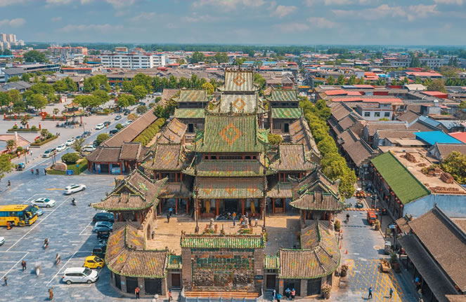 - 特色:始建于清乾隆二十一年(1756年),历时136年竣工,占地10885.29平方米,现存亭台楼阁130余间。融合宫殿、庙宇、商馆、民居园林风格,以“三雕”(石雕、木刻、砖雕)和“三绝”(琉璃照壁、悬鉴楼戏台、春秋楼遗址)闻名,是晋商文化与中原建筑艺术的巅峰之作。