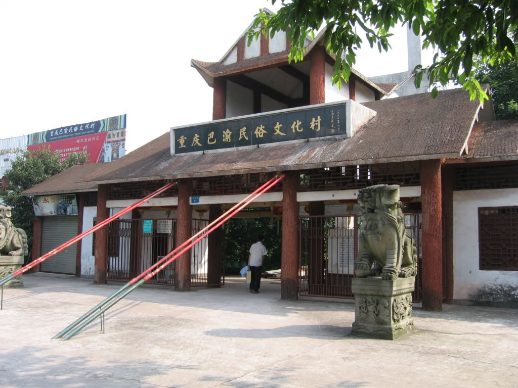 巴渝民俗文化村位于重庆市两江新区双龙大道东侧,北接碧津公园,南临双龙湖,距重庆江北国际机场约2公里,占地面积约5公顷(50余亩)。该村落由国有控股公司运营管理,以展示巴渝传统民俗文化为核心,1997年依托清代至民国时期建筑遗存规划建成。村内主体由巴渝民俗博物馆、四座传统民居院落、观音古庙及清光绪三十年节孝牌坊组成。博物馆收藏千余件民间器物,重点展示雕花木床、家神龛等木雕精品,其中“中国第一床”(六柱五檐满金雕花大床)与“中国第一龛”(鎏金木雕神龛)为代表性藏品。民居院落通过场景雕塑还原诞生礼、婚礼、寿礼等传统仪轨及杀年猪、龙舟竞渡等节庆习俗,并保留酿酒、豆瓣制作等手工作坊供游客体验。村落总投资2800万元,配套索桥、民俗风情街、垂钓湖、茶园等设施,兼具民俗文化教育与旅游观光功能,年接待游客开展传统教育活动。