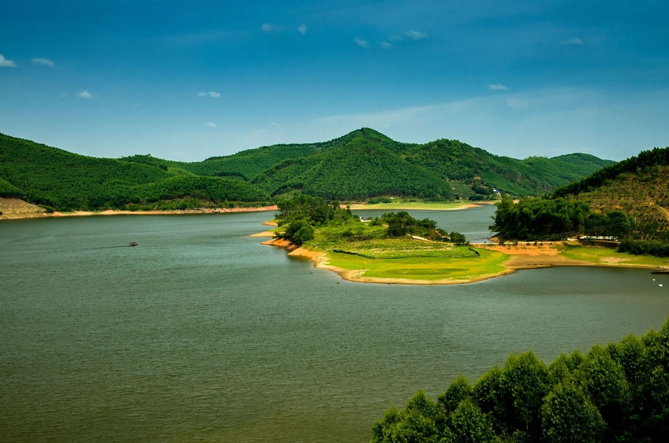 - 主湖区全景:湖面开阔如镜,水质达国家Ⅱ类标准,清晨可观鹭鸟群飞,傍晚可赏“松风听涛”日落
