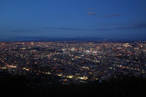 札幌自2015年被选为“日本新三大夜景”之一。这座城市的夜幕降临之后,约200万人生活的璀璨灯火,与渺无人烟的静谧山林,勾勒出清晰的明暗交界,十分美丽。而冬季有北海道特有的清冷空气,与全城积雪带来的统一色调与柔和反光加成,更使冬季的札幌夜景别具一格。