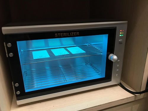酒店在前台设置紫外线消毒器,给前台物品和住客使用的房卡等小型物品杀菌消毒,为客人创造一个更安全的环境。
