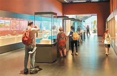 游客在位于辽宁凌源的牛河梁遗址博物馆参观。