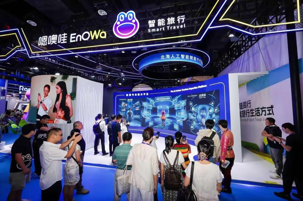 在嗯噢哇科技的展台上,一个“需供同智”的未来智能旅行世界生动展开。这一模式通过AI技术重新定义“所想即所得”的旅行新范式,为游客提供精准匹配的个性化体验,同时为商家及目的地运营者搭建全链路智能体系。