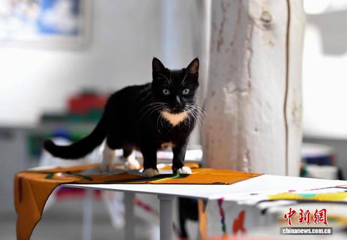 获聘“乡城县荣誉文旅局长”的本土猫咪“卓喵”。记者 王磊 摄