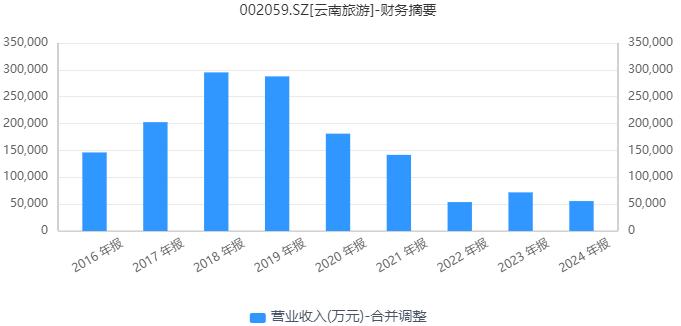 虽然拥有稀缺的旅游资源,但是在业绩上,云南旅游却没有将优势转化为利润。营收方面,公司在2018年达到高点后就快速下滑,这几年营收规模缩水较严重,2024年公司的营收5.57亿元,仅相当于2018年营收的18%左右。