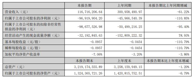 上半年营收降六成亏损近亿元