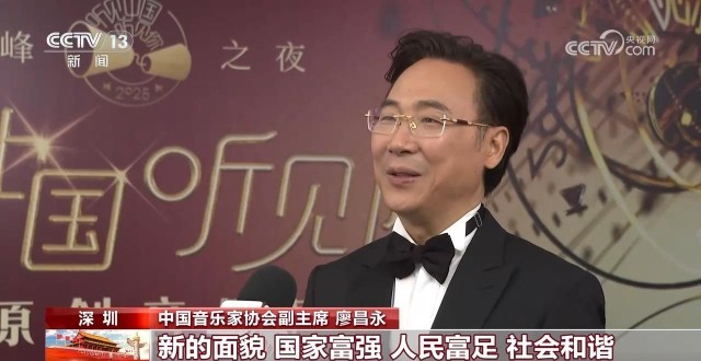 中国音乐家协会副主席 廖昌永:演唱的是《灯火里的中国》,用这个歌来表达新的生活,新的变化,新的面貌,国家富强,人民富足,社会和谐。