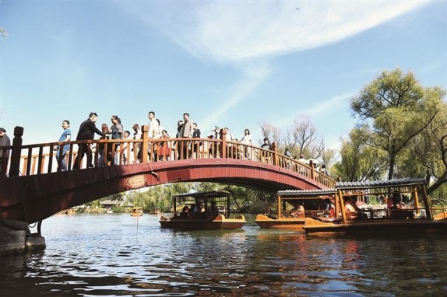 “早听说‘这么近,那么美,周末到河北’,这次来到河北,首站打卡承德避暑山庄。这里环境美、空气好,适合带老人小孩游玩,坐船逛景点既不累又有新鲜感。”来自北京的游客李晓琳说,自己还在春好轩手工非遗体验区尝试了传统手工技艺,老师手把手教学,从选料、裁剪到拼接都讲得特别细致,自己做的手工艺品特别有纪念意义,回去要好好收藏。