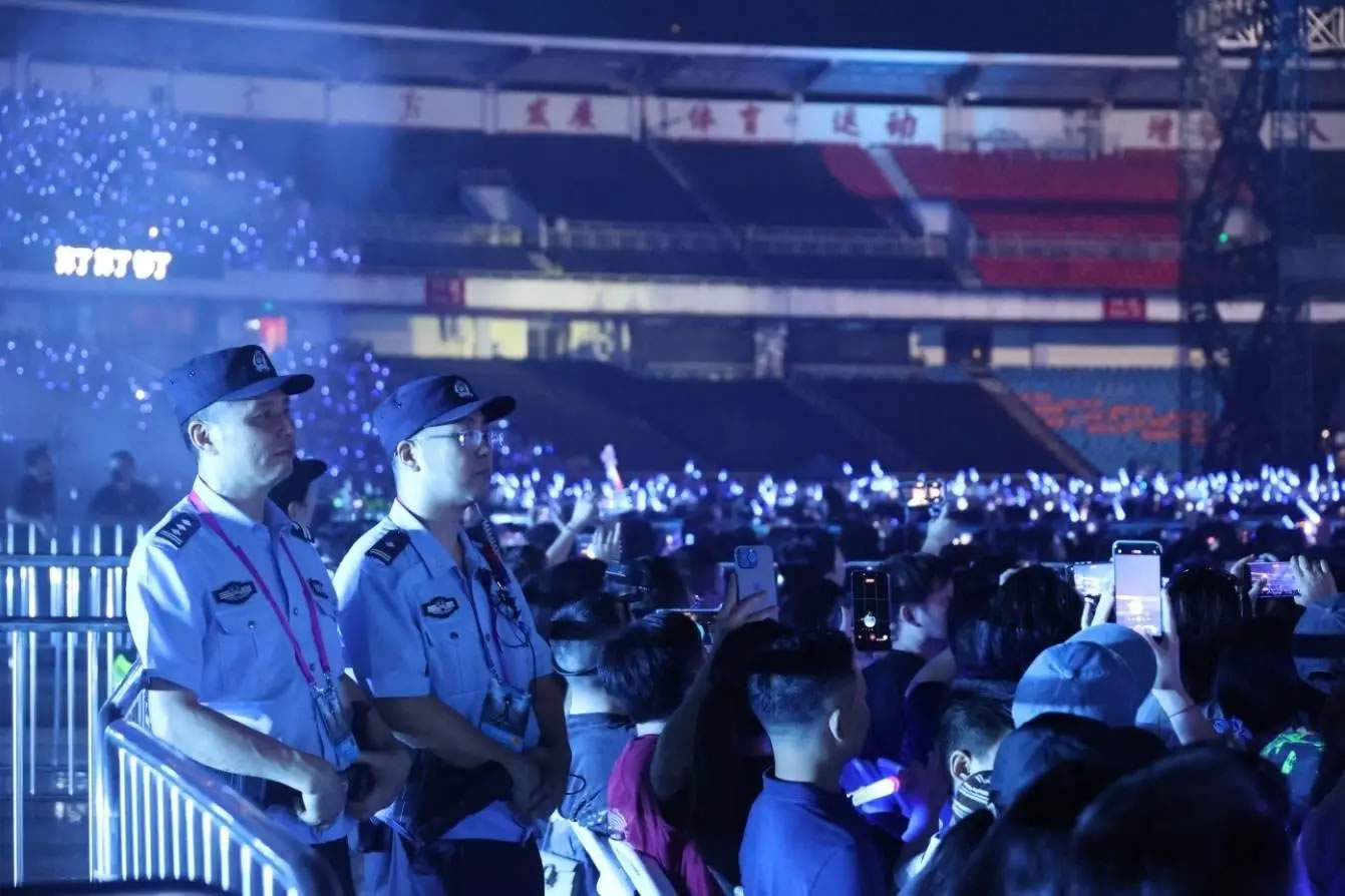 据悉,为保障演唱会安全,重庆市公安局治安总队牵头制定“一点一方案”,协调刑侦、交管、特警、轨道等多警种协同作战。其中,刑侦总队派出搜爆犬加强现场安检,筑牢安全第一道防线;交管部门提前规划路线,实施人车分流,强化周边道路疏导,避免拥堵;治安民警全程在现场值守巡逻,及时回应群众需求;特警冲锋车组定点戒备,随时应对突发情况。各部门参勤民警每日提前4小时到岗开展准备工作,直至最后一名观众疏散完毕才撤岗,以“早上岗、晚撤岗”的勤务模式确保“平安不落幕”。