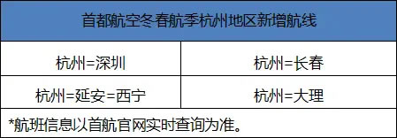10月26日起,民航将迎来航班冬春换季。在新航季,北京首都航空将通过合理规划重点枢纽市场的运力投放及航班时刻,进一步凸显航班优势,在杭州地区新开国内航线4条,使航线网络覆盖全国南北方多地,满足商务、旅游、务工、求学等多种出行需求。