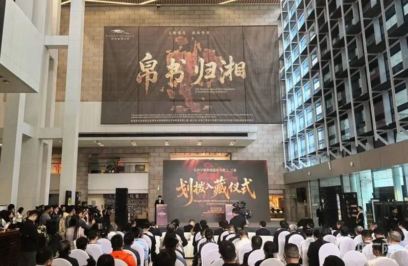 长沙子弹库战国帛书第二、三卷划拨入藏仪式在湖南省博物馆举行(央广网记者黄珂岚 摄)
