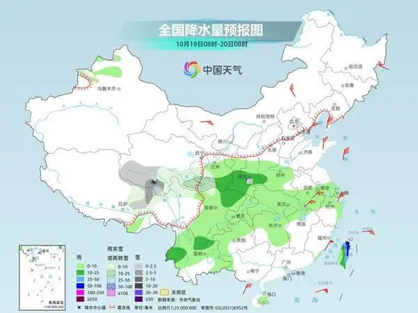 后天,新疆沿天山地区、青海东南部、川西高原北部等地部分地区有小雪或雨夹雪。陕西中部、河南西部、湖北南部、湖南西北部、四川南部、云南东北部、福建东南部、广东东南部、台湾岛等地部分地区有中到大雨。
