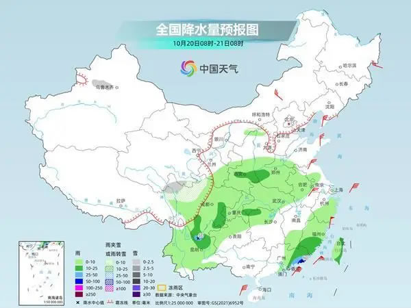 昨天,西南地区东部到黄淮、江淮一带降雨持续,多地现较强降雨;同时,东北地区多地出现雪或雨夹雪。监测显示,昨日8时至今日6时,山东南部、河南中南部、湖北中西部、安徽北部、江苏北部、上海、湖南西北部、重庆北部和东南部、贵州中北部、云南西部等地部分地区出现大到暴雨,贵州铜仁、湖南湘西等局地大暴雨。
