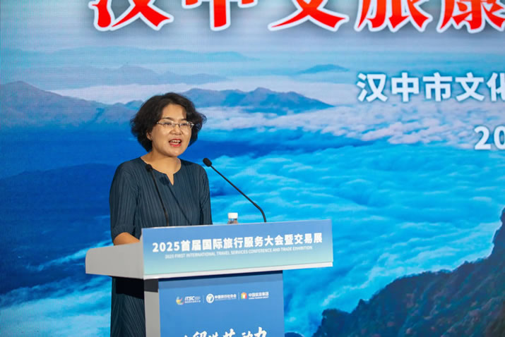 汉中市文旅局局长徐红菊作为“首席文旅推介官”,在开幕式和展馆内向国内外客商热情推介汉中文旅康养产业,详述汉中历史文化和生态资源,并邀请品鉴洋县生态黑米酒及汉中仙毫等。