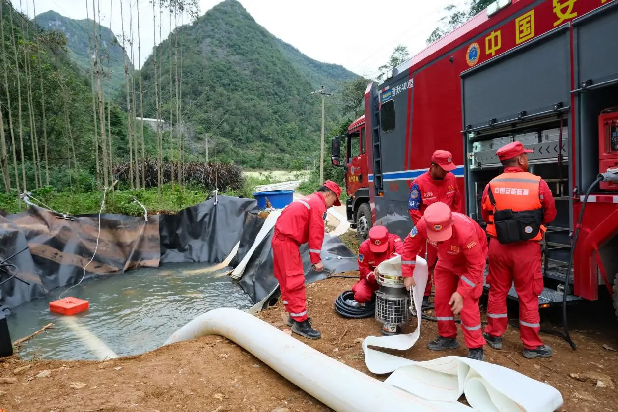 针对剩余的43个内涝点,救援队伍正争分夺秒开展作业。剩余点位多为深积水、高风险区域,广西壮族自治区应急管理厅调配南宁、河池、来宾等地40余名消防员、8台排涝车辆进驻靖西新甲乡等重点区域,为排涝工作提供持续支持。