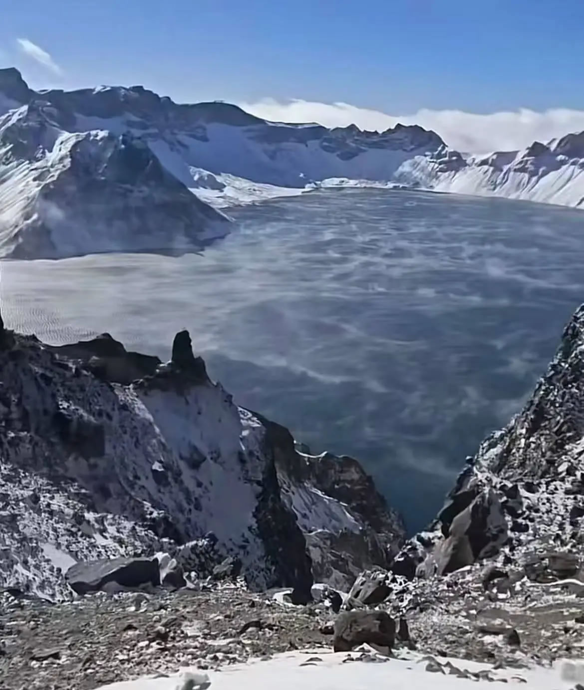 该工作人员称,在上述气温条件下,水暖、空气冷,水面上产生的水蒸气被冷空气迅速凝结,在大风的作用下,就像水面在沸腾、波动,“在长白山天池,这种现象一年可能会出现一到两次。”