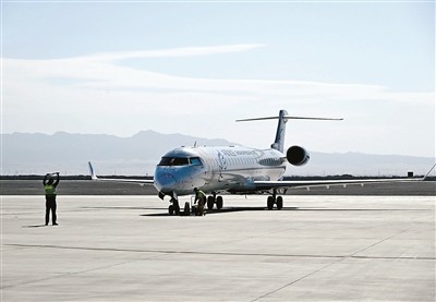 昨日,敦煌至哈密冬春航季首航航班降落在敦煌莫高国际机场