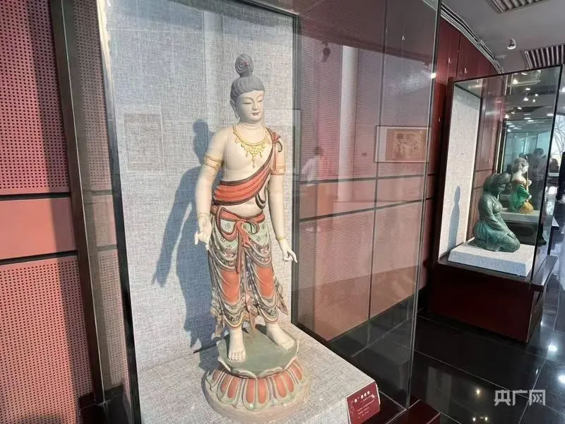 本次展览精选30件敦煌彩塑、70件敦煌石粉彩绘作品(央广网发 蒋好 摄)