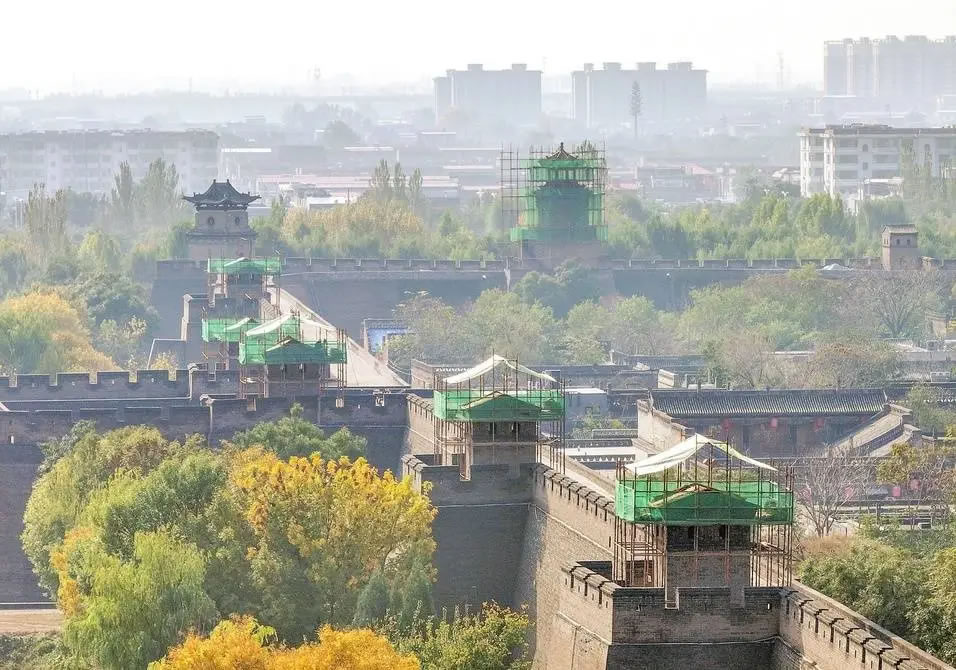 10月28日,平遥古城东城墙展开修缮作业。此次修缮是对现存72座敌楼进行房面防水保护工程,采取分段实施、封闭作业的方式,最大程度减少对游客的影响。(梁生仁)