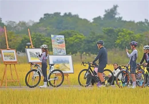 11月2日,2025第二届“顶蛳山稻香彩韵旷野展”画展+音乐会在南宁市邕宁区顶蛳山田园风光区举办。活动现场,画家们用画笔描绘金秋景色,吸引众多市民、游客前来参观游玩。(记者沈程 通讯员滕忠 摄)