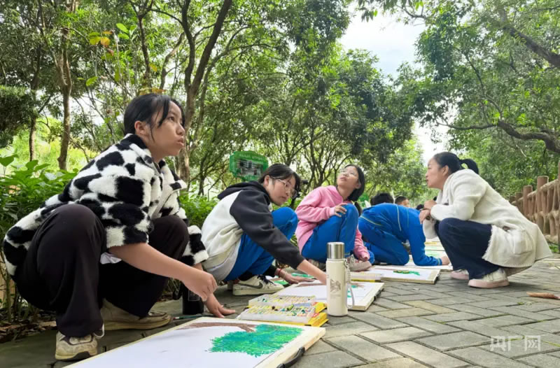 学生在肇庆龙溪栈道进行创作写生(央广网记者 官文清 摄)