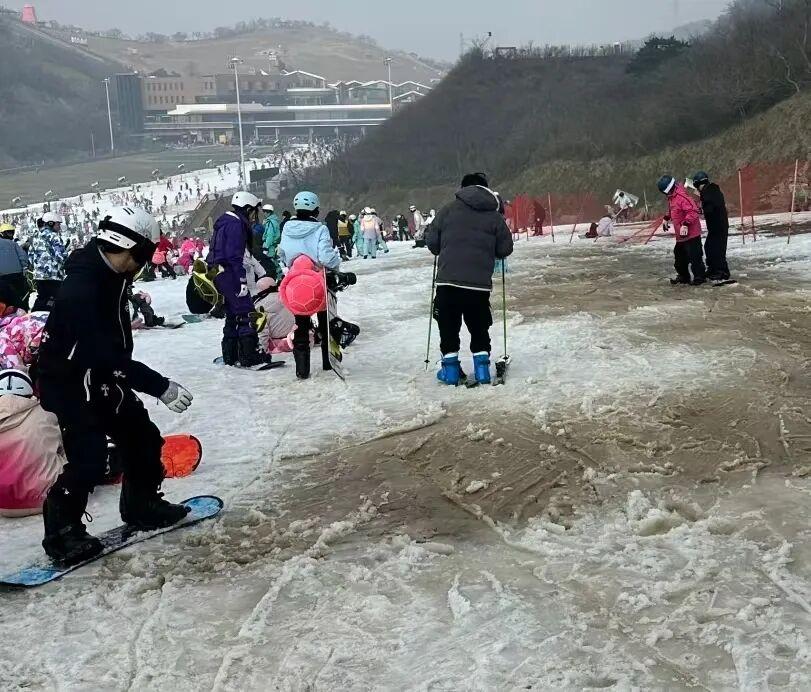 “开了两三小时的车过来玩,结果滑雪变滑泥,感觉有点扎心。”