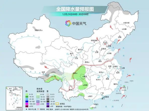今天(12月29日),我国大部地区维持晴朗干燥天气,明后天雨雪天气发展增多,部分地区雨雪混杂,公众外出需小心慢行,注意交通安全。眼下,正有一股冷空气影响我国,华北、东北多地将现降温,明天开始新一股冷空气将接力,降温影响或延续至元旦假期,局地累计降温幅度可超10℃,公众需注意气温变化,及时添衣保暖。