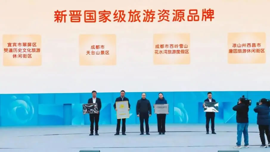 12月25日,2025年四川省旅游景区发展大会在凉山州西昌市召开。会议现场,成都市天台山景区获新晋国家5A级旅游景区授牌。