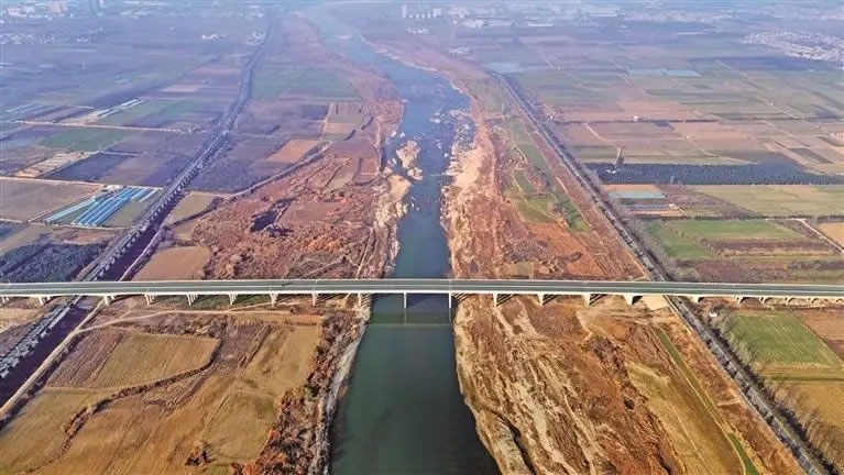 全长1106米的渭河特大桥是眉太高速公路控制性工程。图为12月21日航拍的渭河特大桥(资料照片)。