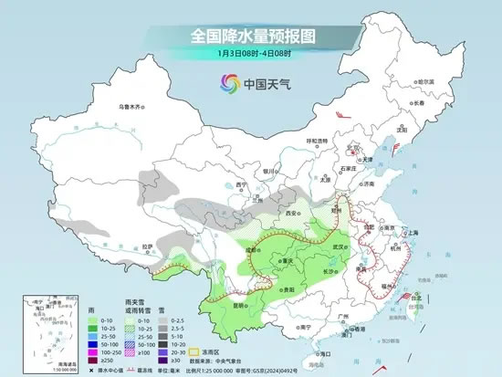 具体来看,中央气象台预计,今天青藏高原北部和东部、甘肃中南部、宁夏、陕西北部和西南部等地部分地区有小到中雪或雨夹雪。西藏东南部、四川盆地、贵州中南部、云南东部和南部、台湾岛等地部分地区有小到中雨。
