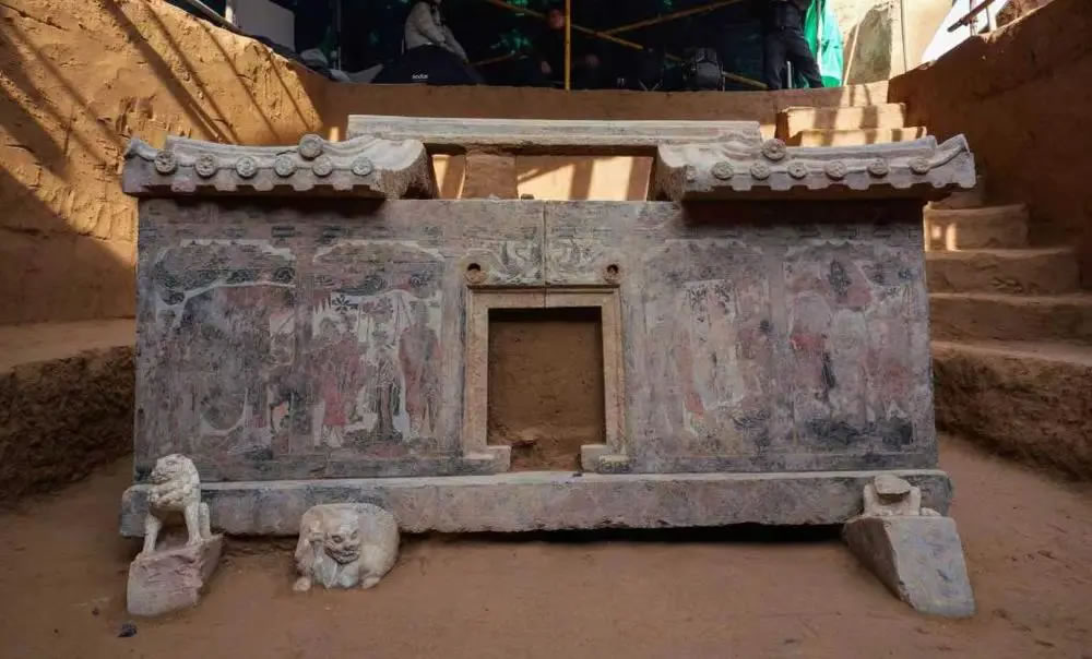 这是西安百花村北周成夫人墓中发现的石椁。(西安市文物保护考古研究院供图)