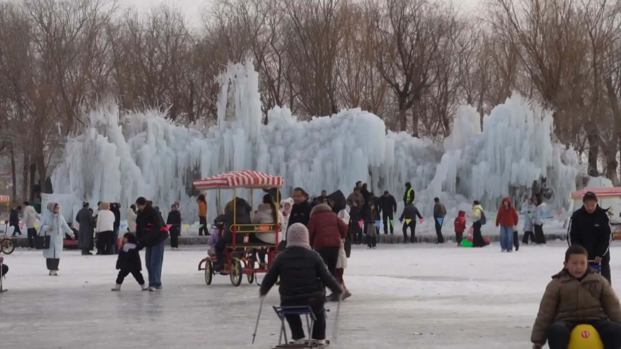 近日,在库车市东湖的冰面上,前来滑冰的市民游客络绎不绝,大家一同体验单双人冰车、冰上自行车等趣味项目,现场欢声笑语不断,运动的快乐温暖着冰场上的每个人。